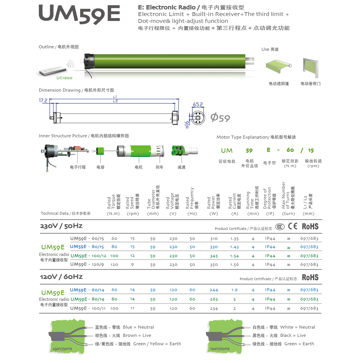 E:Electronic Radio/電子內(nèi)置接收型 Electronic Limit+Integrated radio control+jogging & tilt+The third limit/電子行程限位+內(nèi)置接收器+點動調光功能+第三行程點