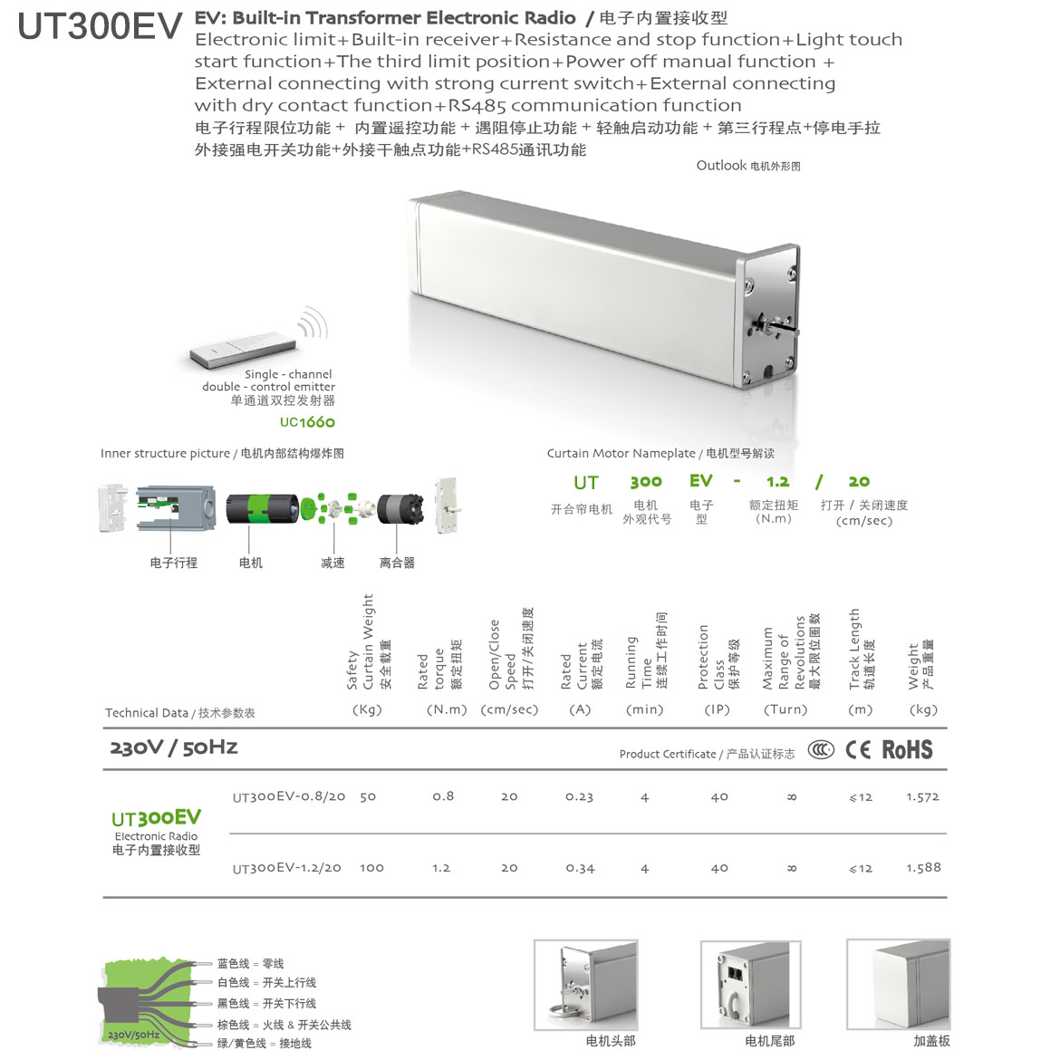 電子記憶限位功能+內(nèi)置遙控功能+遇阻停止功能+輕觸啟動(dòng)功能+停電手拉功能+第三行程點(diǎn)功能+可外接干觸點(diǎn)開(kāi)關(guān)功能+可外接強(qiáng)電開(kāi)關(guān)功能+插卡取電功能+RS485功能