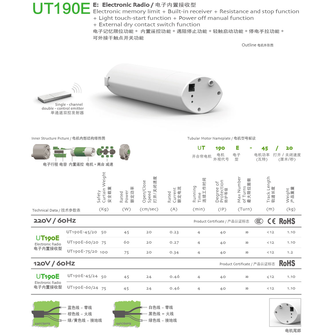 電子記憶限位功能+內(nèi)置遙控功能+遇阻停止功能+輕觸啟動(dòng)功能+停電手拉功能+第三行程點(diǎn)功能+可外接干觸點(diǎn)開關(guān)功能